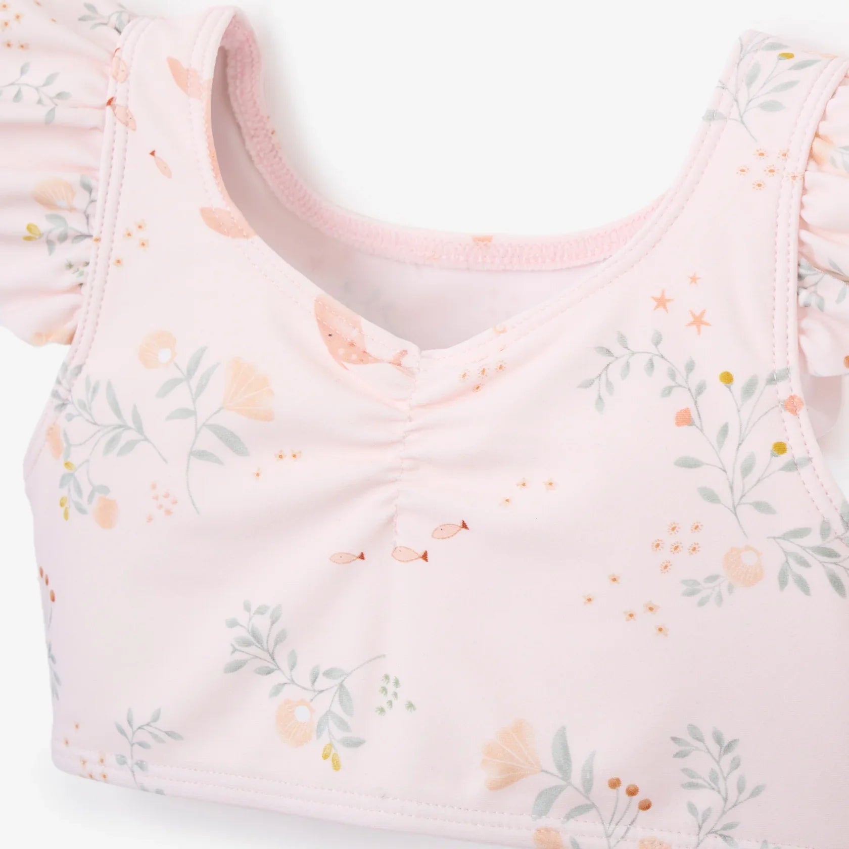 Crafted with care and designed for maximum comfort and safety, this adorable swimsuit is a must-have for sunny days at the beach or pool. Featuring a playful mermaid print, our swim ruffle two piece adds a charming touch to your baby's swimwear ensemble. Made from high-quality, UPF 50+ fabric, this summer essential is lightweight and breathable, perfect for all-day wear in and out of the water.