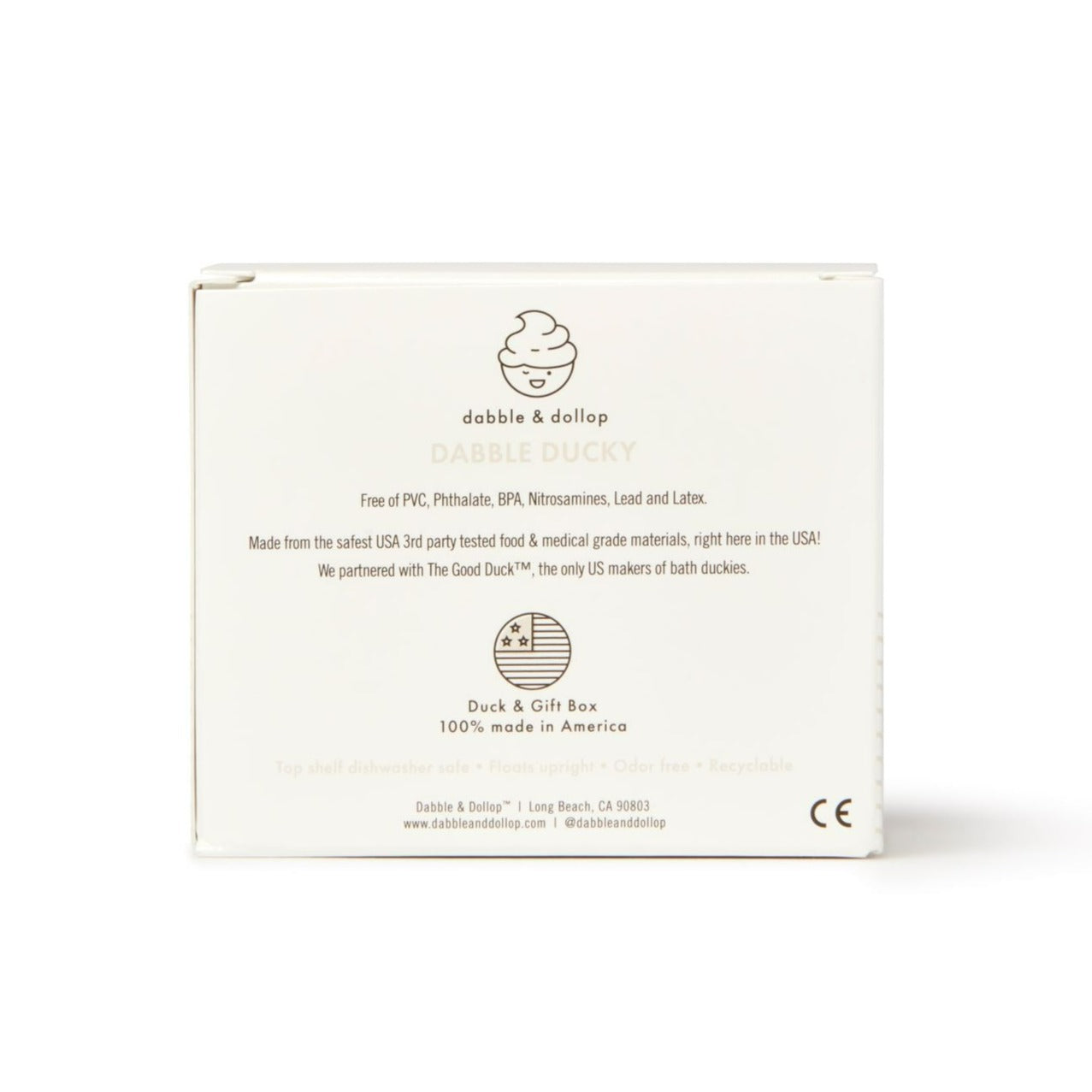 Meet Dabble Ducky - the cutest and safest bath toy for infants and kids with latex allergies. Made in the USA in collaboration with The Good Duck®, our ducky is free from phthalates, BPA, and latex and made of recyclable materials. Top-shelf dishwasher safe and odor-free, Dabble Ducky floats upright in the tub and is the only ducky bath toy still made in the USA. Award-winning and loved by parents, Dabble Ducky is the perfect addition to bathtime fun.