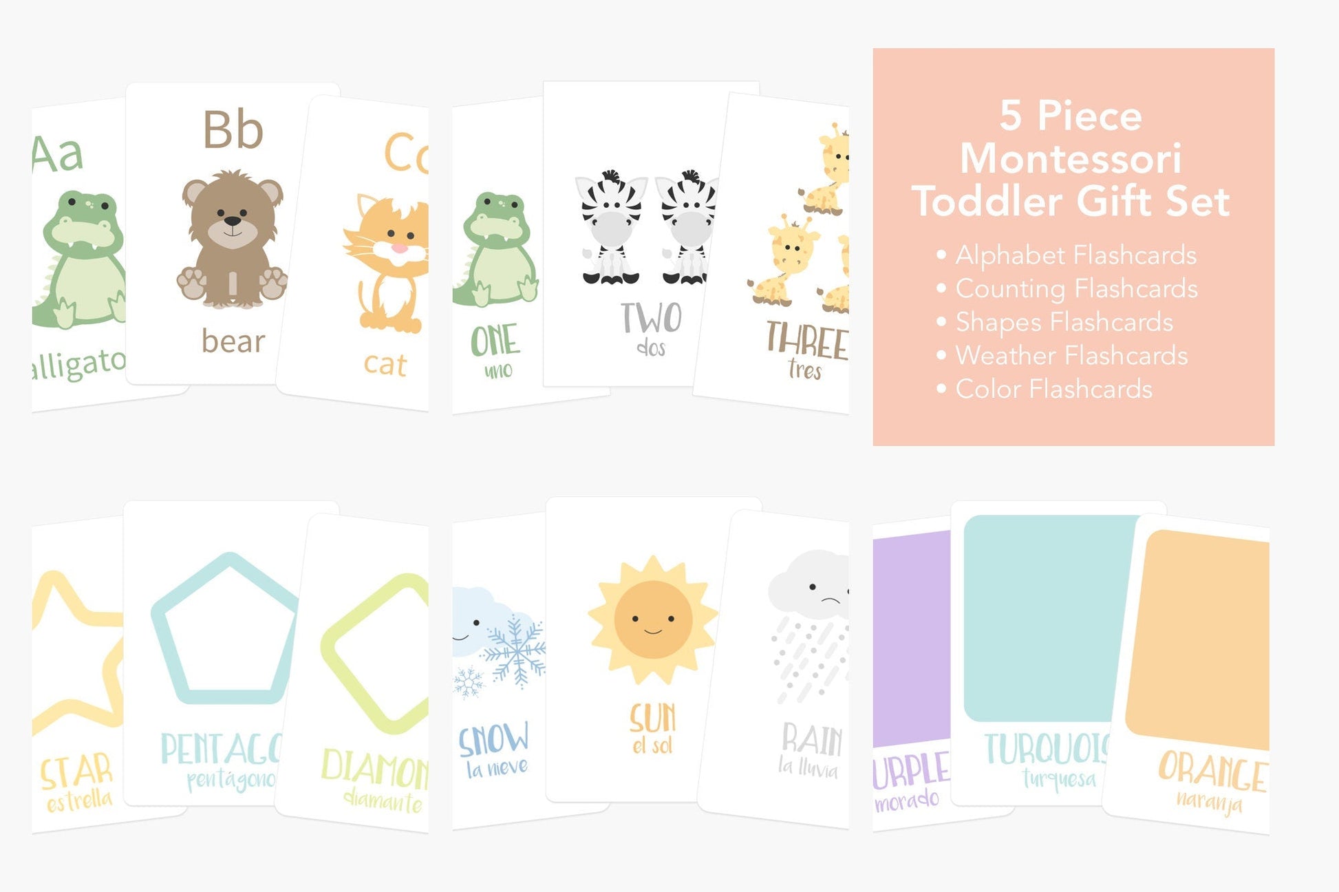 Montessori Toddler Gift Flashcard Bundle This ultimate bundle is perfect for the toddler in your life who's learning new words! This set includes all of the classroom word basics and is perfect for your little language learner! Great for ages 1-4, this set includes the following best sellers from the Goodnight Fox collection.