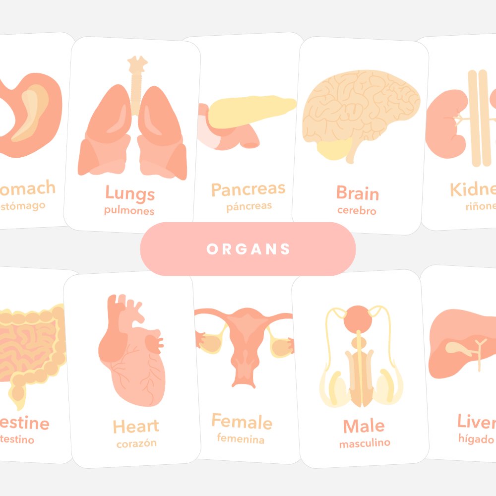 These physical Organs Flashcards help preschool and early elementary children learn about the major organs inside the human body in a calm, age-appropriate way. Featuring simple, friendly illustrations paired with English and Spanish labels, this set introduces early anatomy concepts while supporting language development and body awareness.