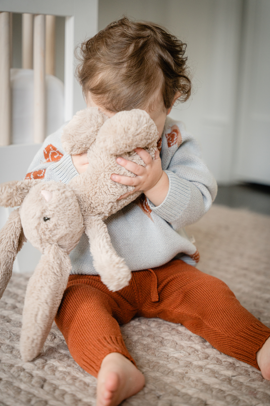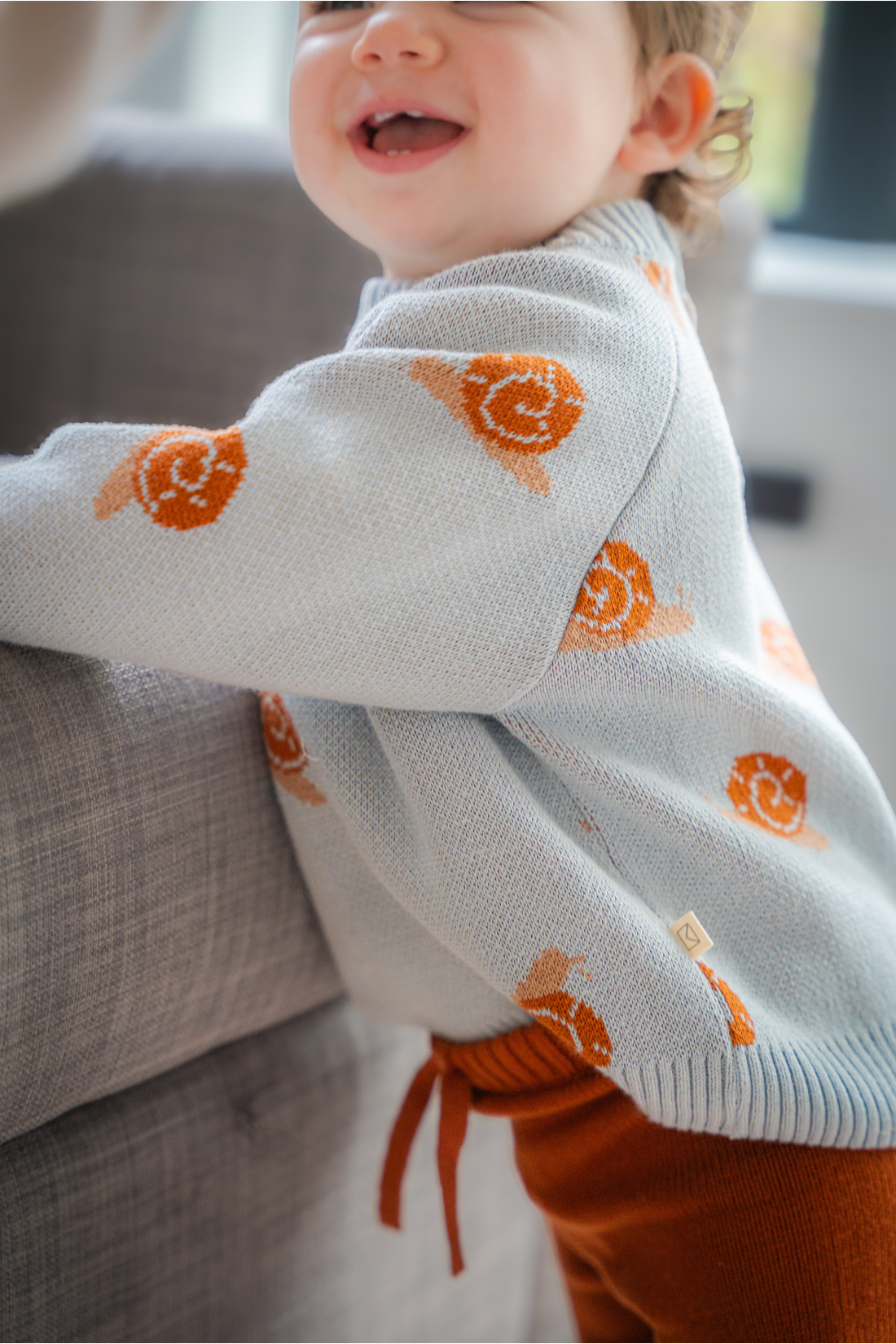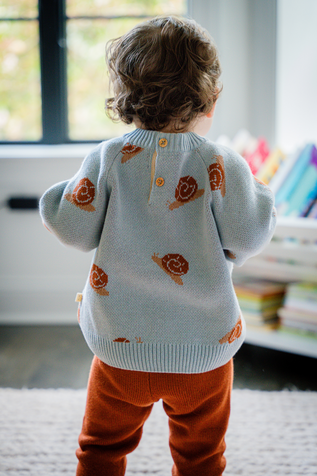 These super soft knit joggers are made of 100% Pima Cotton from Peru. They feature an elastic waist and faux knit drawstrings for a sweet detail. Your little one will be comfortable and cozy all day long in these precious pants. Pair them with our Organic Cotton Snail Knit Sweater in Oatmeal or Pearl Blue or our Organic Cotton Fox Knit Sweater in Mocha or Pale Pink.