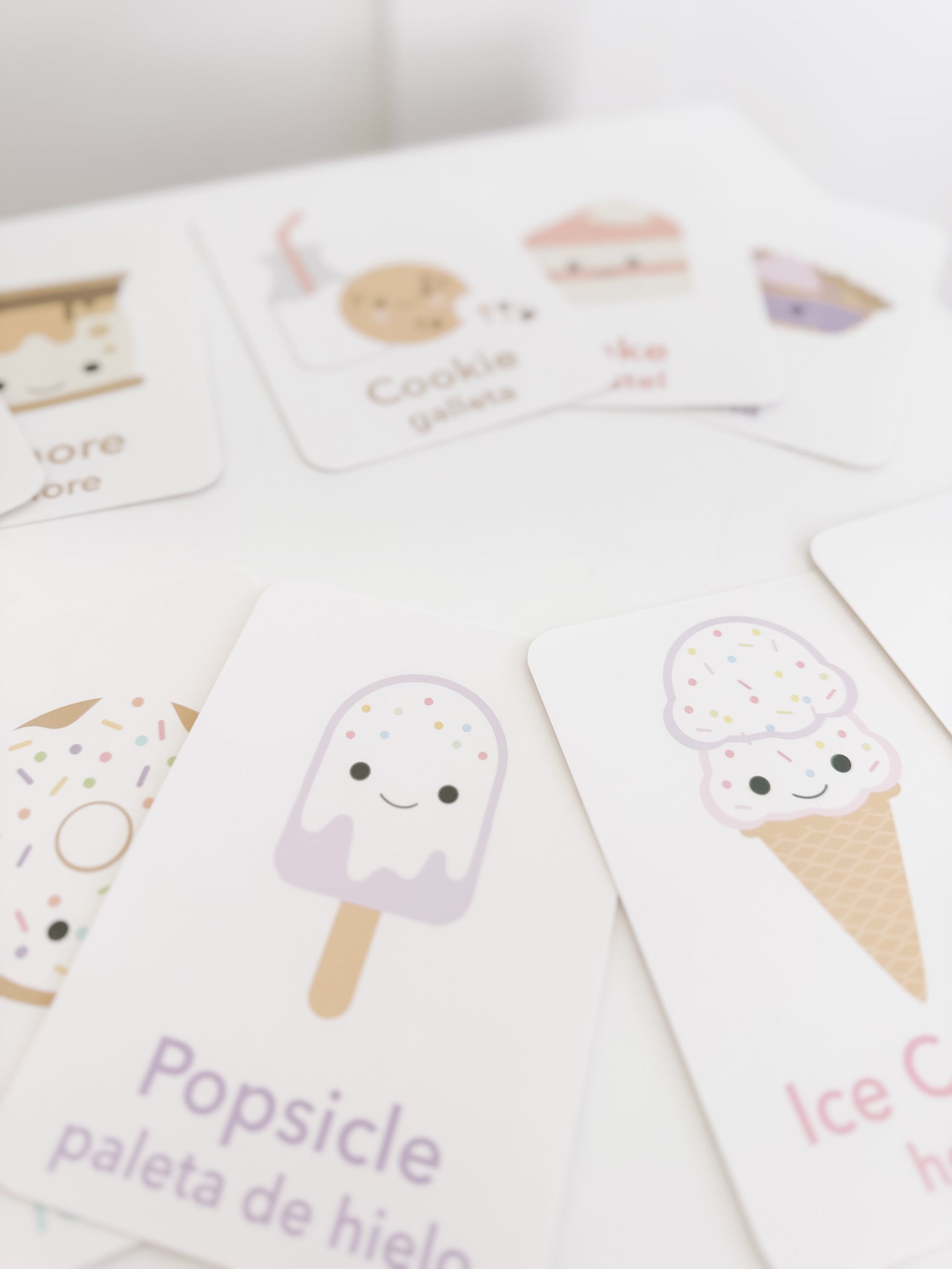 These physical Sweet Treats Flashcards help toddlers and preschoolers recognize and name common desserts and sweet foods through calm, hands-on play. Featuring soft, friendly illustrations paired with English and Spanish labels, this set supports early language development while encouraging neutral, pressure-free conversations about sweets.