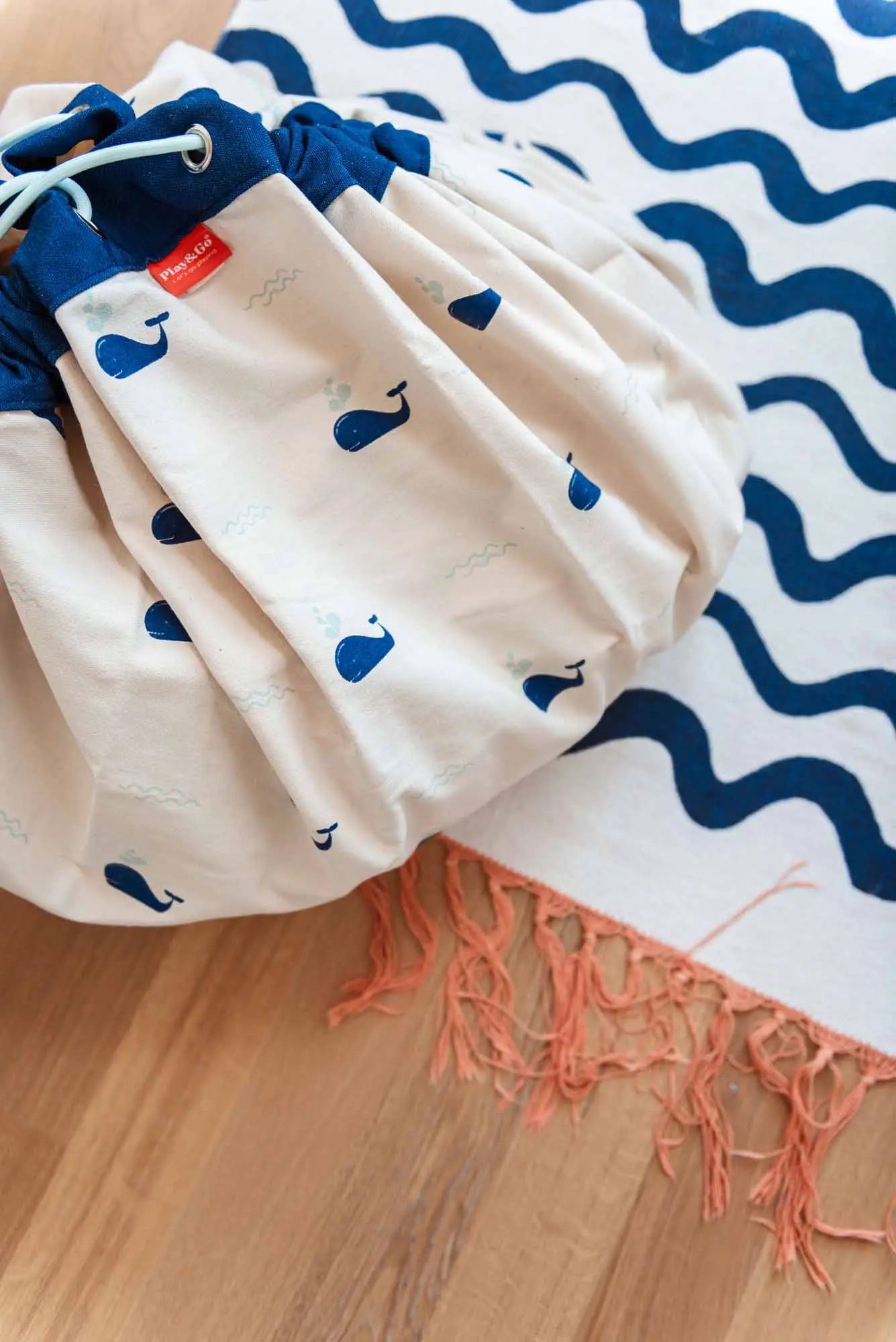 Your little one loves to splash in the water, and you wonder if he will grow up to explore the vast ocean. Watch them smile as they play on this mat spotted with friendly whales. Encourage your child to learn new things and explore different places. At the end of the day, pack everything you need into the storage bag that was once a playmat bursting with opportunities.